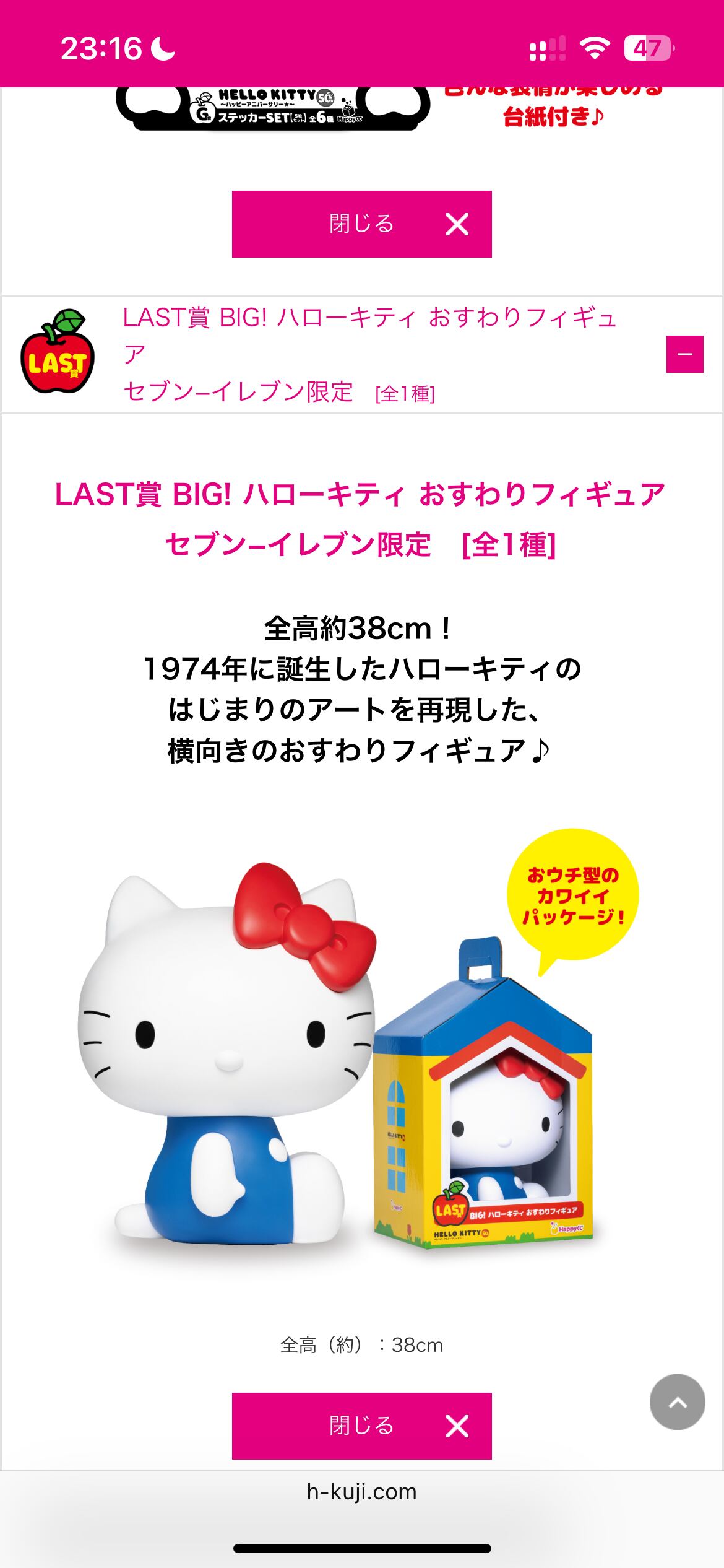 1ロット販促品未開封くじ券付きHappyくじ『HELLO KITTY 50th~ハッピーアニバーサリー★~』